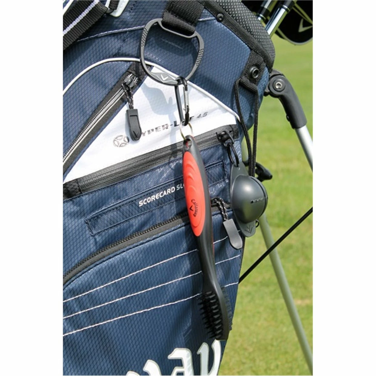 - Includes carabiner for clipping Callaway golf brush to golf bag