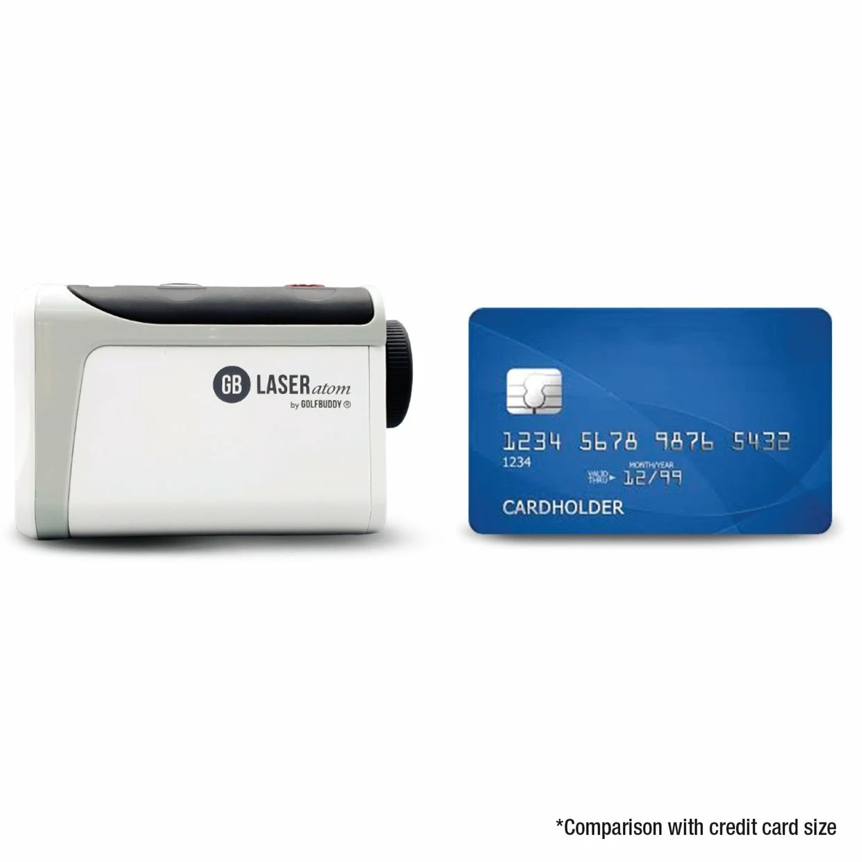 The Golf Buddy Laser Atom Range Finder is a great compact device for even the most casual golfer. The 6X magnification allows players to plan their shots on every turn. With a ivory leather case included the Laser Atom can be kept in a safe place till you need it.