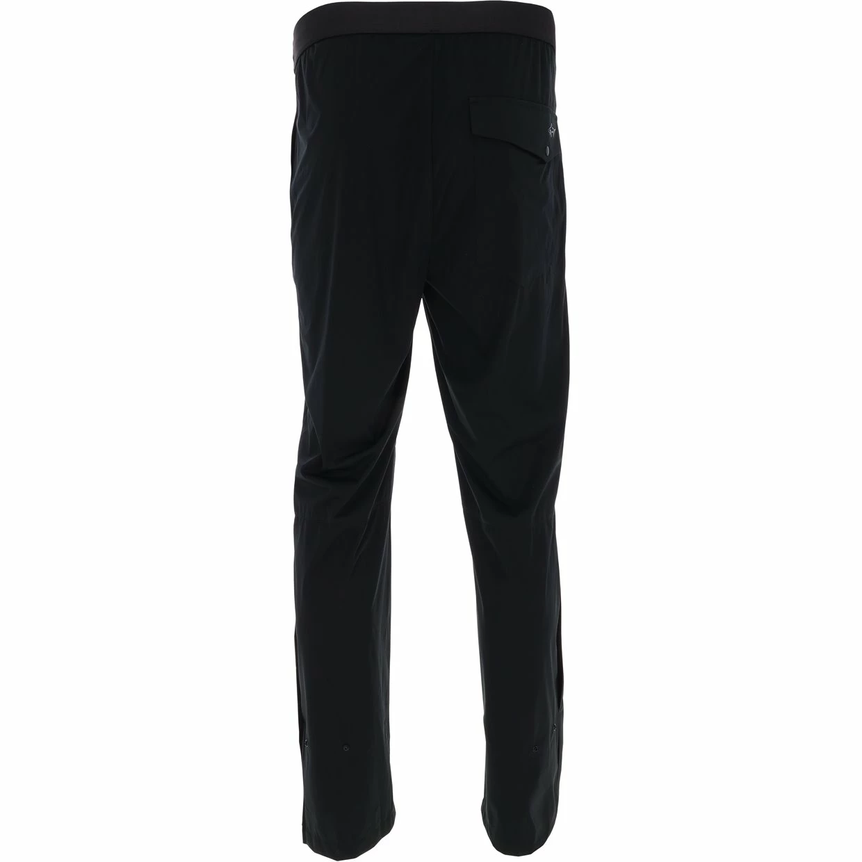 The Greg Norman Weatherknit Rain Pant features a wind/water resistant finish, elastic waistband with a drawstring, alterable hemmed construction, and 1 back snap flap pocket with a shark logo to keep you dry and comfortable on a rainy day