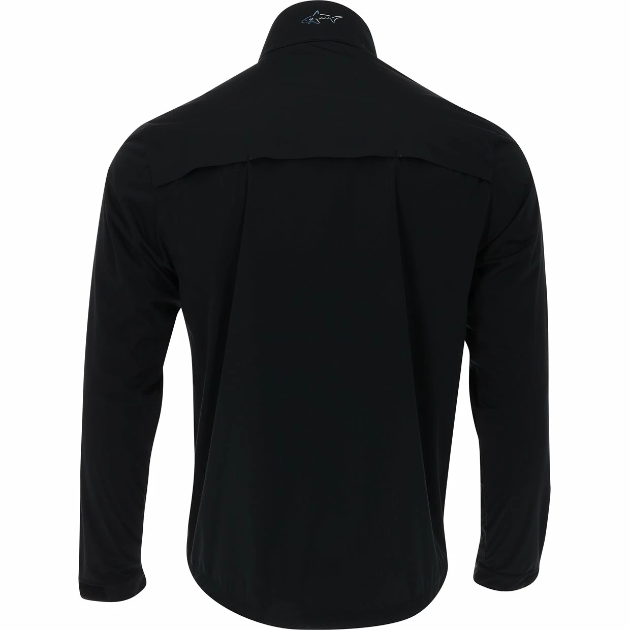 The Greg Norman Weatherknit Long-Sleeve Full-Zip Jacket features 2 zip front and chest pockets, shark logoed velcro closure on cuffs, comfort stretch tech, interior media port on pocket, breathable front and back mesh ventilation, and a blue-grey shark logo on the back neck to keep you comfortable and stylish… on and off the golf course