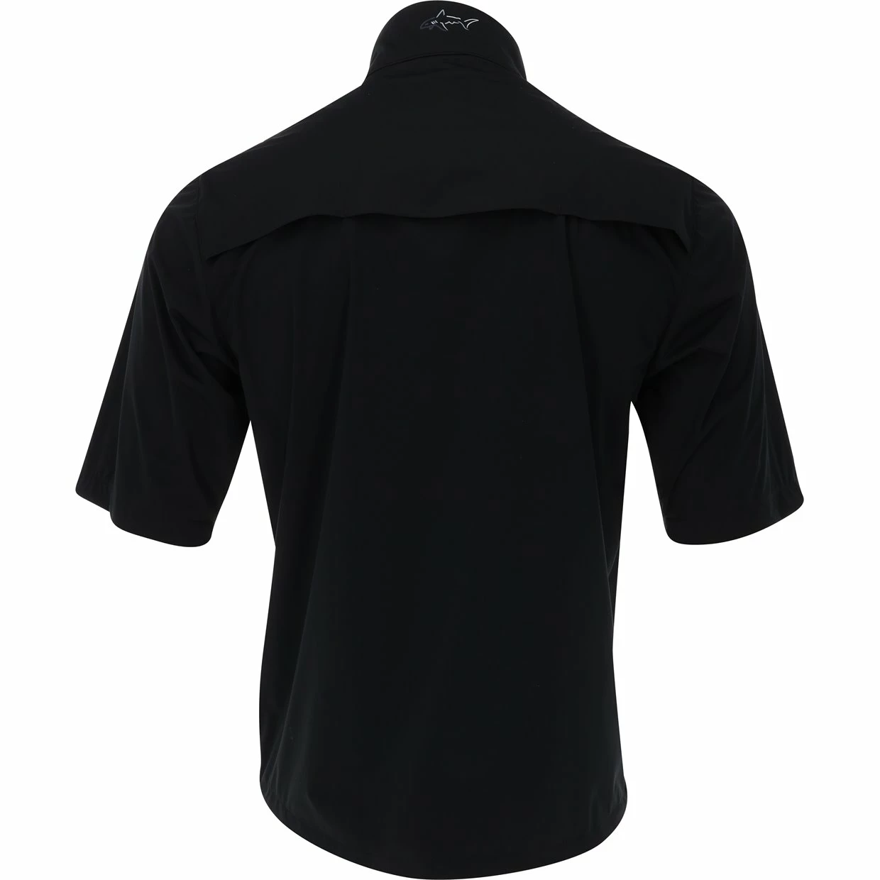 The Greg Norman Weatherknit Short-Sleeve Full-Zip Jacket features 2 zip front and chest pockets, shark logoed velcro closure on cuffs, comfort stretch tech, interior media port on pocket, breathable front and back mesh ventilation, and a blue-grey shark logo on the back neck to keep you comfortable and stylish… on and off the golf course